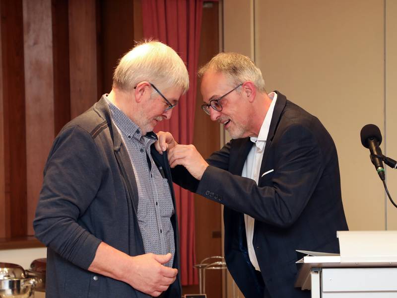 Die Goldene Ehrennadel bekam Günter Schlarmann (links) von Axel Schwengels für rund 30 Jahre Genossenschaftstätigkeit.